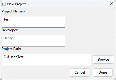 Project Path : The path to the root directory of your project and its related files, here, mine is "C:\UsageTest"